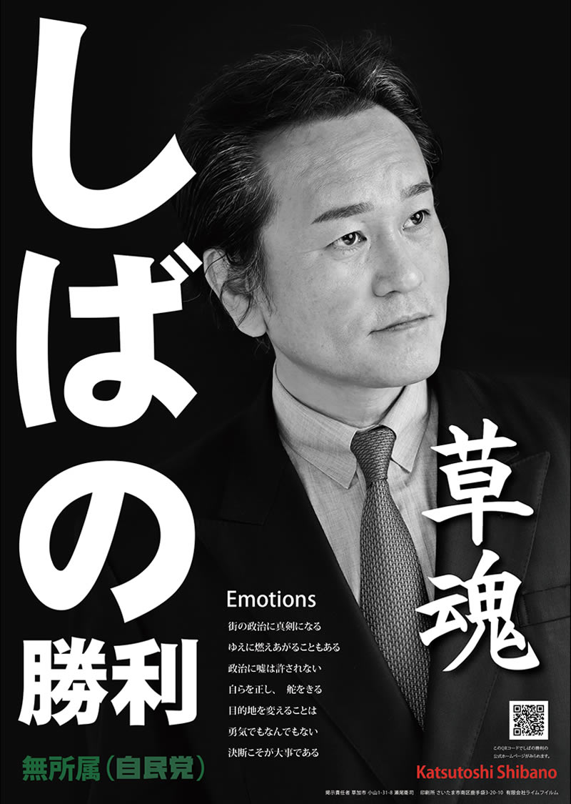 しばの勝利の政策理念。草加市が直面しているいくつかの課題について簡潔に説明しています。